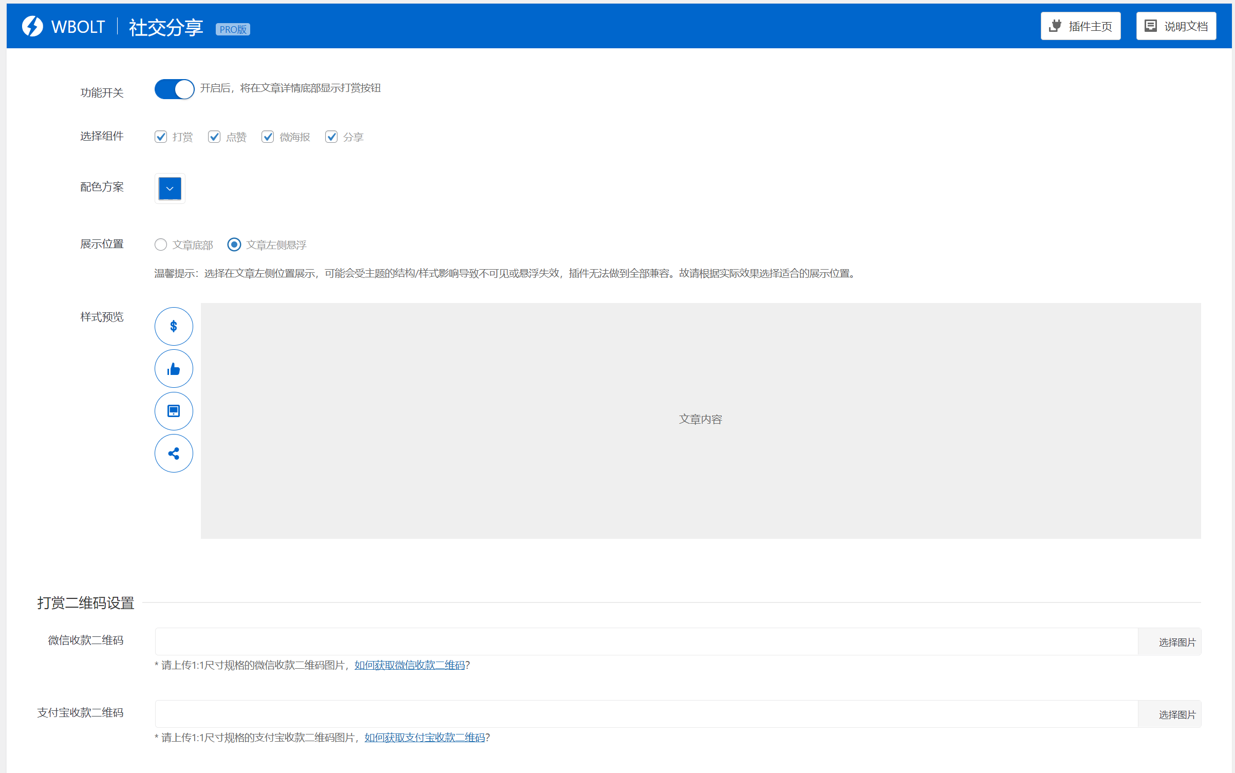 原创博客社交分享组件插件的功能集成了网站打赏、文章赞、微海报和社交分享功能。