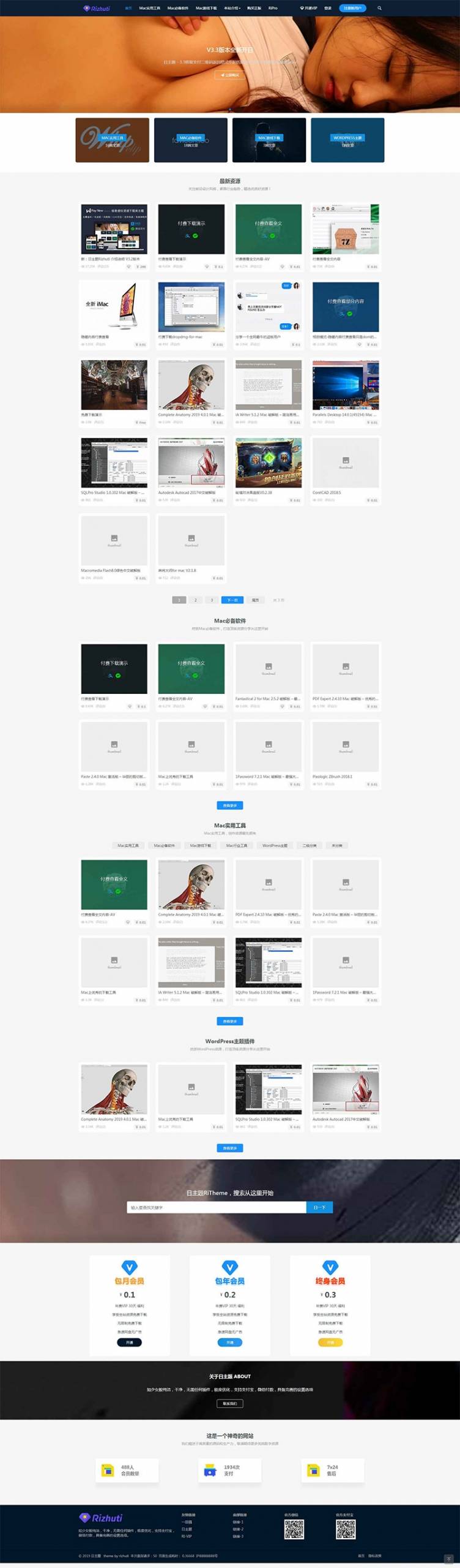 日主题汇集无限下载地址,无限自定义字段,极致后台体验,免登录付费,无插件,集成会员系统,邮件订单通知,首页模块化拖拽布局,主题无需任何插件。集成支付宝微信官方接口以及个人免签约支付接口。